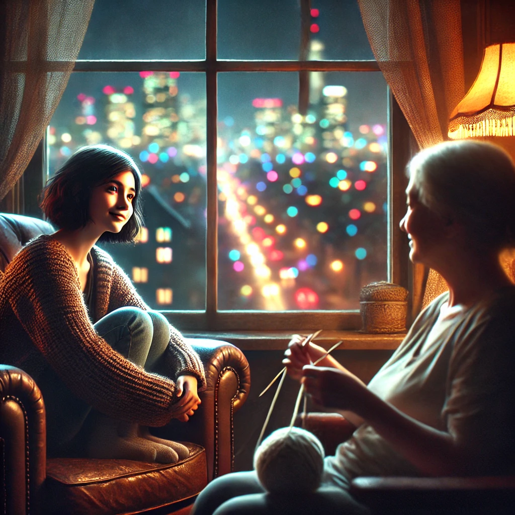 Maya took a deep breath, letting her grandmother’s words sink in. As she looked out the window again, the city lights no longer seemed overwhelming. There was a new kind of clarity in the night. She wasn’t stuck in yesterday or tomorrow anymore—she was right here, in this moment, and that was enough.