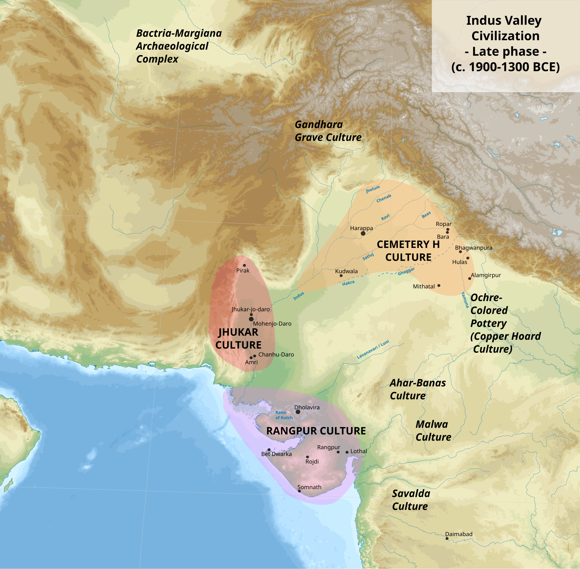 - Bactria-Margiana Archaeological Complex (BMAC) (1800–1500 BCE): In northern Afghanistan and Turkmenistan (~37–40°N, 60–66°E), Indo-Aryans interacted with the BMAC, adopting agricultural practices (Wikipedia, Indo-Aryan migrations).