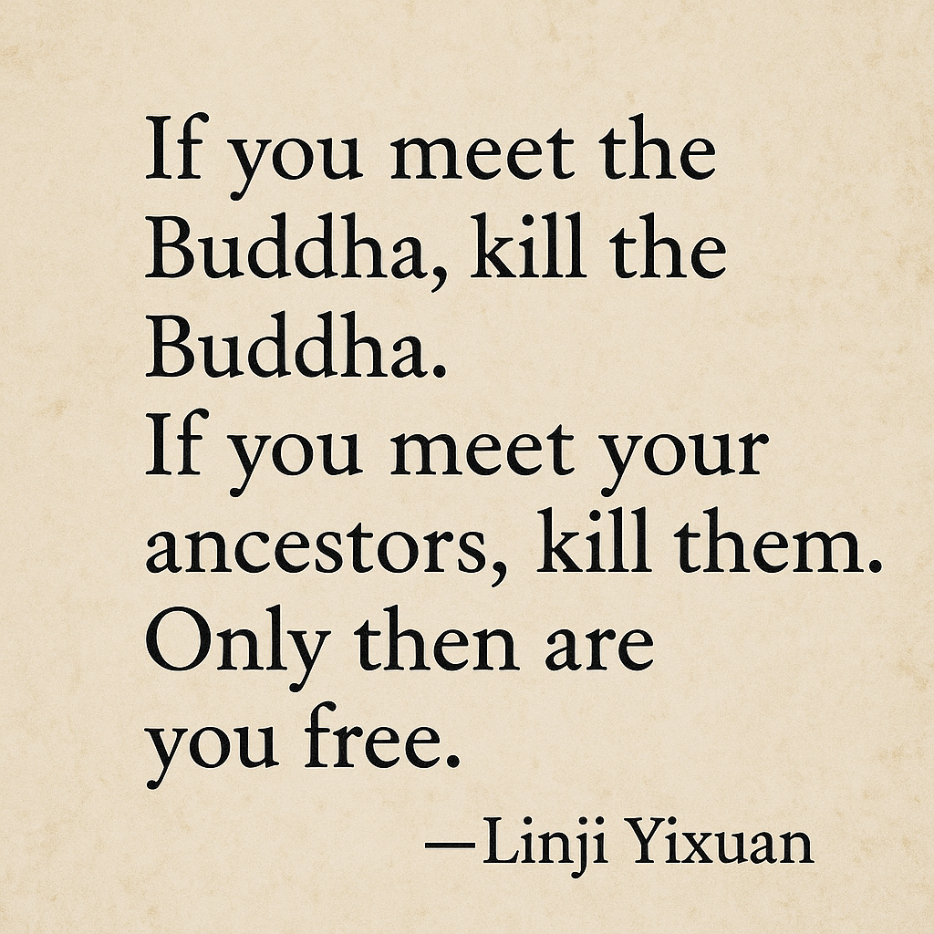 When Zen master Linji said, “Kill the Buddha,” he was not calling for destruction. He meant: Let go of every idea, even sacred ones. Even the idea of liberation itself. If you grip it too tightly, it becomes your new prison. True freedom isn’t taking the palace. It’s realising there was never a palace to begin with. No ruler. No rope. Just the aching, wondrous pulse of being—unadorned, unthreatened, unafraid.