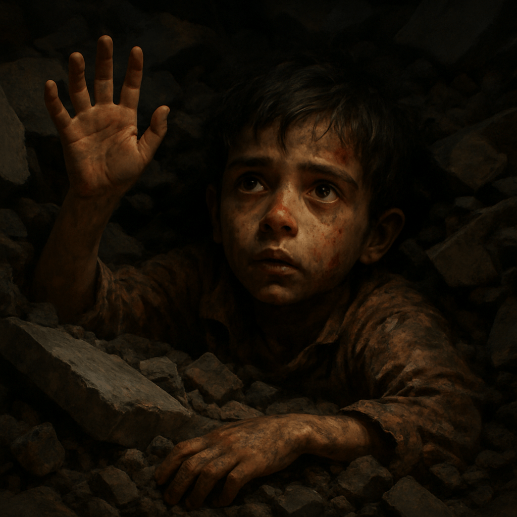 (A cry from beneath the wreckage—unignorable, eternal.)