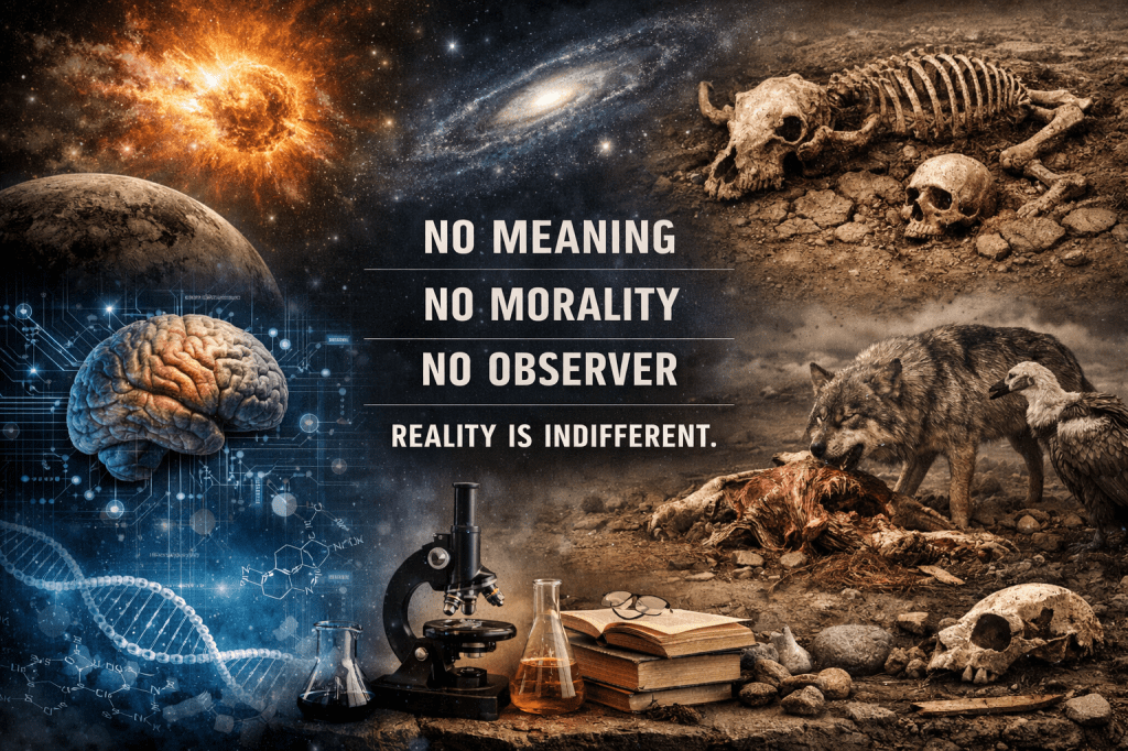 reality requires no meaning to exist, no morality to function, and no observer to continue.